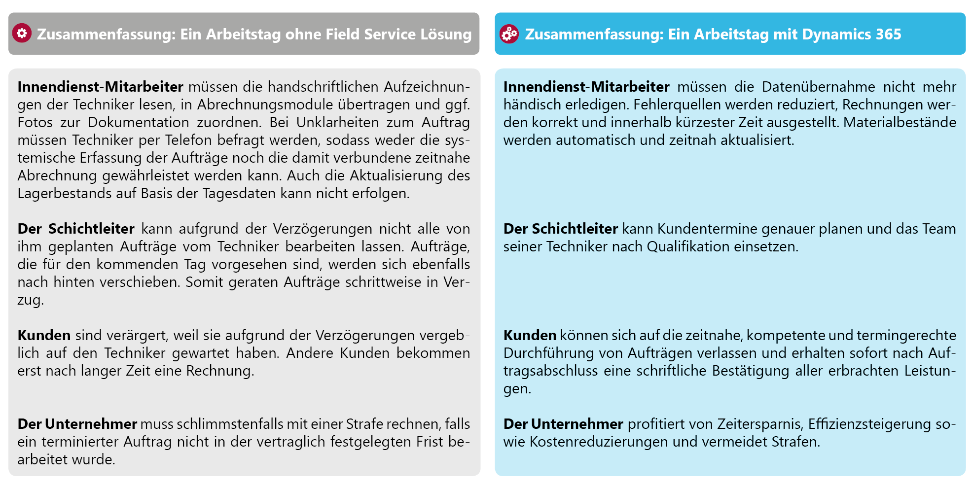 • Die Zeitspanne vom Eingang des Auftrags bis zur Disposition an den Techniker wird reduziert.