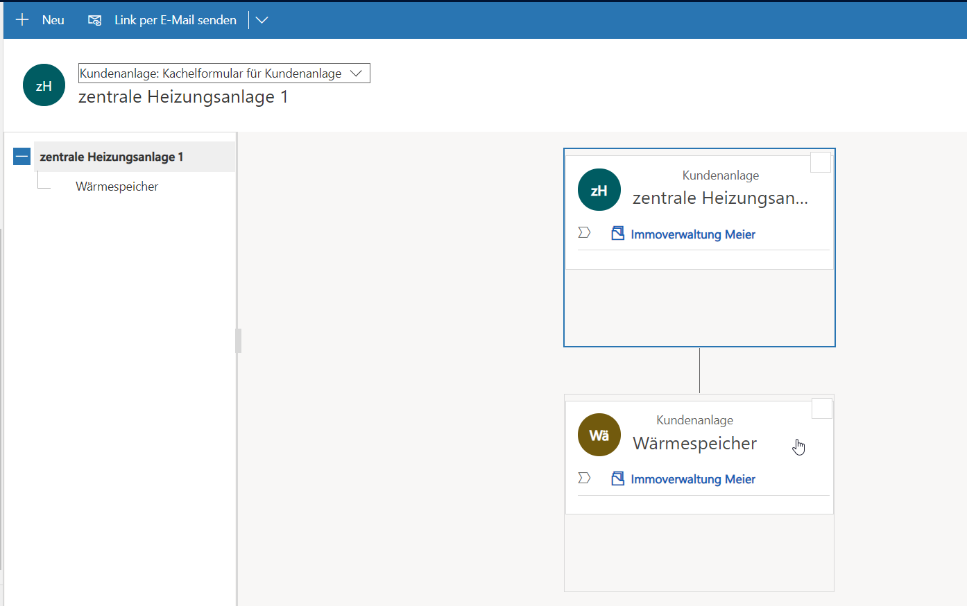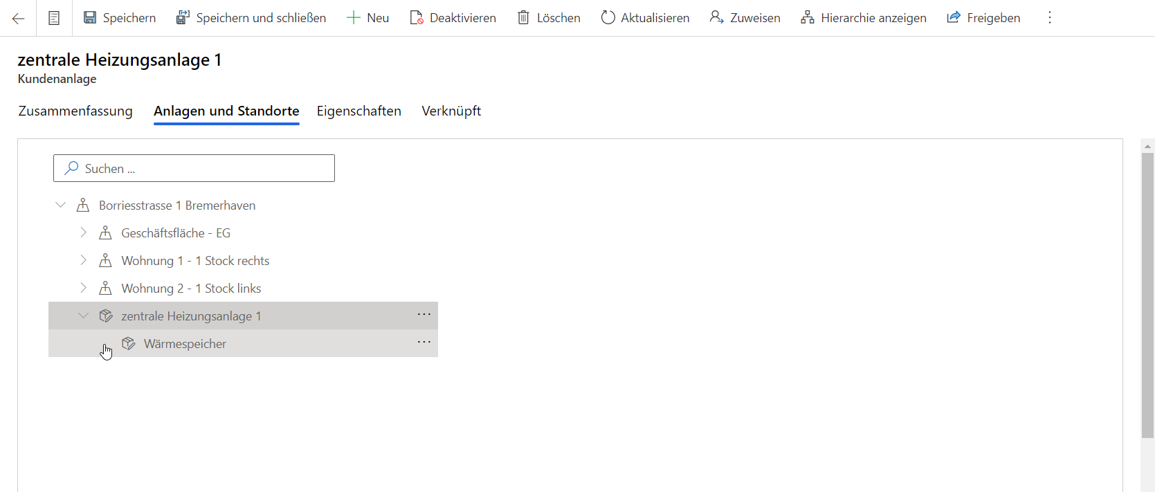 Eine Neuerung in diesem Bereich ist, dass Sie Anlagen jetzt auch hierarchisch abbilden können. Sie erkennen, dass eine Hierarchie vorhanden ist, wenn das Symbol vor der Anlage angezeigt wird.